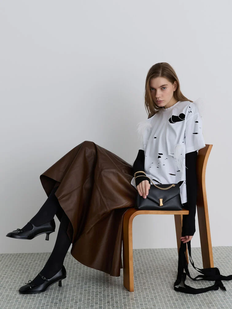Chiếc túi Lilibet màu mận này nổi bật với khóa kim loại bắt mắt, dây đeo dạng xích và thiết kế dạng phong bì. Mang chiếc túi này để nâng tầm những bộ trang phục đơn giản với màu sắc tinh tế và một chút lấp lánh quyến rũ.
