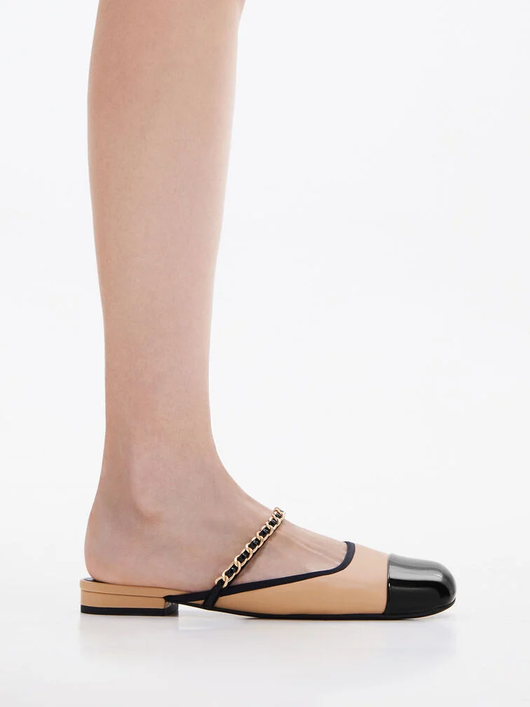Một phối màu cổ điển kết hợp với kiểu dáng dễ mang trong đôi giày mules bằng da bóng thời trang dễ dàng này. Mũi giày màu đen đối lập với lớp hoàn thiện màu trắng sạch sẽ để tạo nên thiết kế hai tông màu nổi bật, tạo cảm giác thanh lịch và bóng bẩy. Để thêm chút quyến rũ, dây xích trên mu giày tạo sự vừa vặn an toàn hơn và yếu tố sáng bóng nâng tầm phong cách thoải mái. Cho dù là đi làm hay ăn trưa Chủ Nhật, đôi giày này đều là sự lựa chọn hoàn hảo.